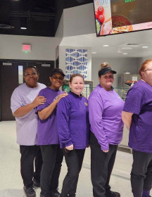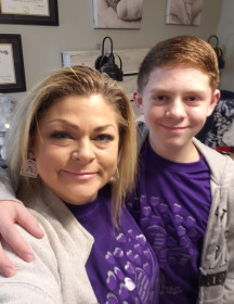 Friday we had Kleefstra awareness at school so many people wore purple and I took pictures with them as well. I love how many people had shirts with my name on them. It also says “With “ and that is my favorite word right now. When I left school we went to sissy Joy and Miss Joyce work.. they work for Masonite and everyone there was wearing the Run with Liam shirts.. So grateful for all of them supporting me. They let me fist bump and hang out like I belong … They have bought a lot of shirts and helped us a lot on our trip to Boston..They got Red and Yellow b/c that is what they have to wear to work but it had our purple tree and my run with Liam ..